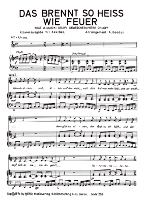 Das brennt so heiß wie Feuer - Noten für Klavier und Gesang Peter Orloff
