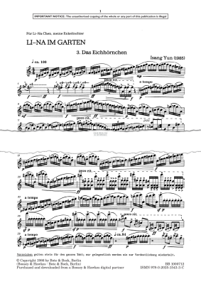 Das Eichhörnchen (aus Li-Na im Garten) - Noten für Violine Isang Yun