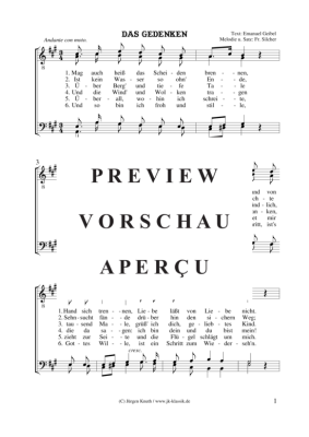 Das Gedenken - Noten für Männerchor Friedrich Silcher