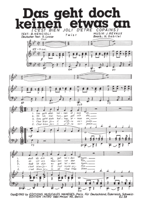 Das geht doch keinen etwas an (Cest bien joli dentre copains) - Noten für Klavier und Gesang Suzanne Doucet