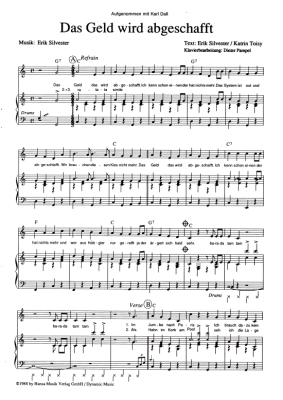 Das Geld wird abgeschafft - Noten für Klavier und Gesang Karl Dall