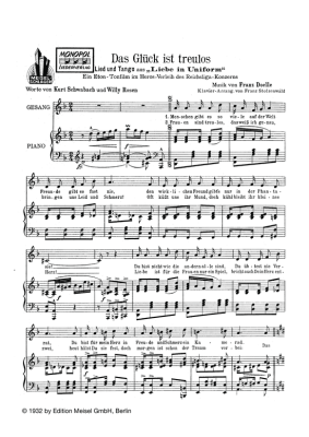 Das Glück ist treulos - Noten für Klavier und Gesang aus: Liebe in Uniform