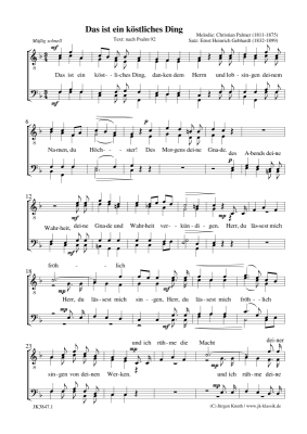 Das ist ein köstliches Ding - Noten für Männerchor Christian Palmer