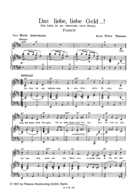 Das liebe, liebe Geld - Noten für Klavier und Gesang Foxtrott
