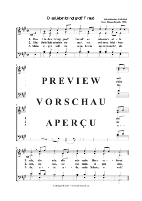 Das Lieben bringt groß´ Freud - Noten für Gemischter Chor Schwäbisches Volkslied, Satz: Jürgen Knuth,1952-