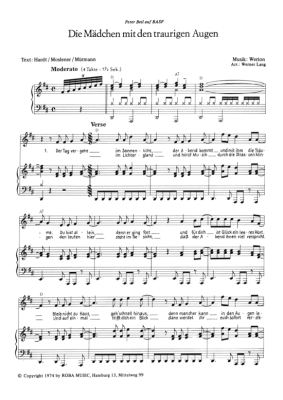 Das Mädchen mit den traurigen Augen - Noten für Klavier und Gesang Peter Beil