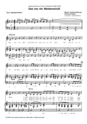 Das war ein Meisterschuß - Noten für Klavier und Gesang Reinhard Starke