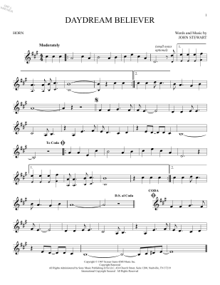 Daydream Believer - Noten für Horn The Monkees