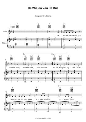 De Wielen Van De Bus - Noten für Gesang + Klavier, Gitarre traditional