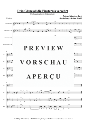 Dein Glanz all die Finsternis verzehrt - Noten für Klarinettenquartett Johann Sebastian Bach