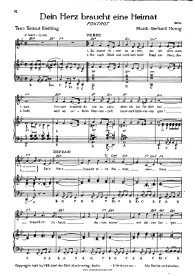 Dein Herz braucht eine Heimat - Noten für Bärbel Wachholz (1963)