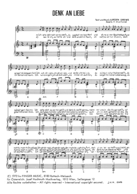 Denk an Liebe - Noten für Klavier und Gesang Jürgen Drews