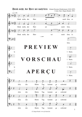 Denk nicht, der Herr sei noch fern - Noten für Gemischter Chor Johann Erasmus Kindermann