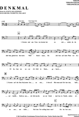 Denkmal - Noten für Violoncello Wir Sind Helden