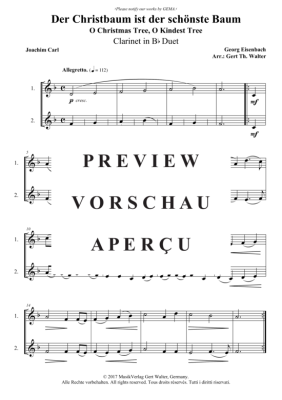 Der Christbaum ist der schönste Baum - Noten für Klarinetten Duett Georg Eisenbach