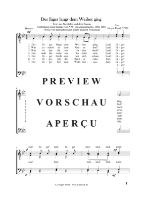Der Jäger längs dem Weiher ging - Noten für Männerchor A.W. von Zuccalmaglio, 1802-1869 / Satz: Jürgen Knuth*1952