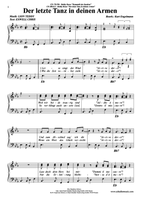 Der letzte Tanz in deinen Armen - Noten für Klavier und Gesang Bobby Rosso