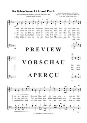 Der lieben Sonne Licht und Pracht (BWV 446) - Noten für Gemischter Chor Johann Seb. Bach
