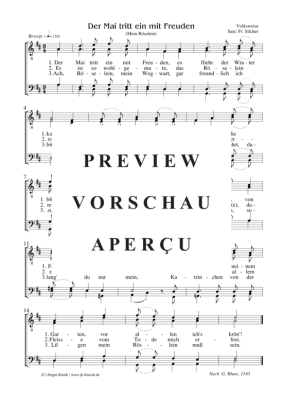 Der Mai tritt ein mit Freuden - Noten für Männerchor Unbekannt, Satz: Fr. Silcher