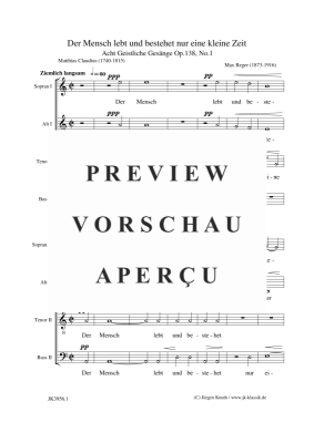 Der Mensch lebt und bestehet nur eine kleine Zeit Op.138, No.1 - Noten für Gemischter Chor 8-stimmig SSAATTBB Max Reger