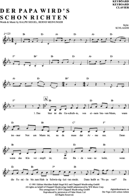 Der Papa Wird´S Schon Richten - Noten für Keyboard Peter Alexander