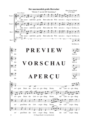 Der unermesslich große Herrscher (Motette 4 aus der MC Sammlung 5) - Noten für Männerchor Hans Georg Nägeli