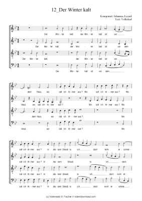 Der Winter kalt - Noten für Gemischter Chor Johannes Eccard / Volkslied