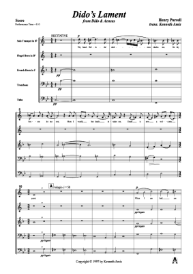 Dido's Lament - Noten fĂŒr BlechblĂ€serquintett Henry Purcell