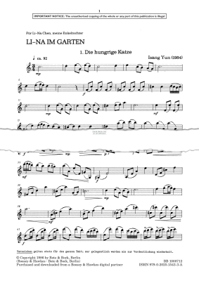 Die hungrige Katze (aus Li-Na im Garten) - Noten für Violine Isang Yun