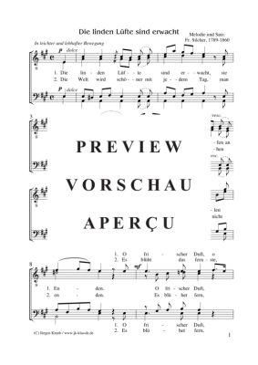 Die linden Lüfte sind erwacht - Noten für Männerchor Friedrich Silcher