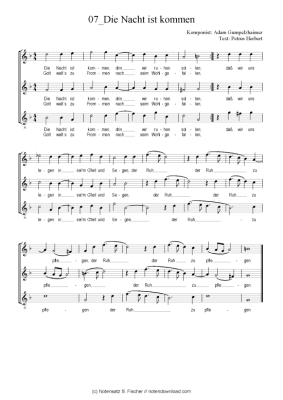 Die Nacht ist kommen - Noten für Gemischter Chor Adam Gumpelzhaimer / Petrus Herbert