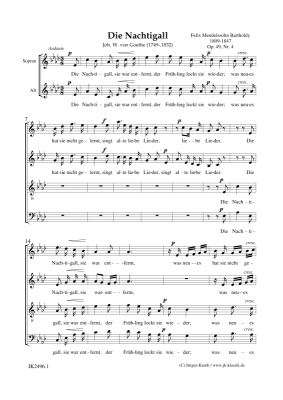 Die Nachtigall, op. 49, Nr. 4 - Noten für Gemischter Chor Felix Mendelssohn Bartholdy