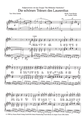 Die schönen Tränen des Laurentius - Noten für Klavier und Gesang Die Wildecker Herzbuben