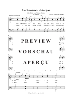 Die Schwälble ziehet fort - Noten für Männerchor Friedrich Silcher