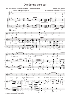 Die Sonne geht auf - Noten für Klavier und Gesang