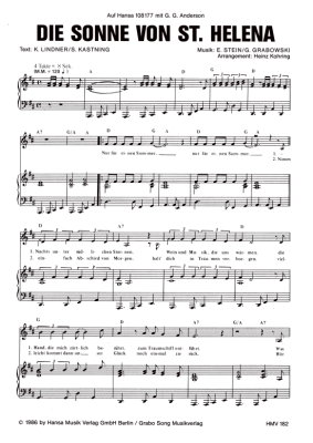 Die Sonne von St. Helena - Noten für Klavier und Gesang G.G. Anderson