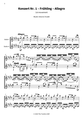 Die vier Jahreszeiten - arrangiert für zwei Violinen - Noten für Geige The Twiolins