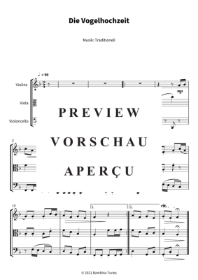 Die Vogelhochzeit - Noten für Streicher Trio Traditional