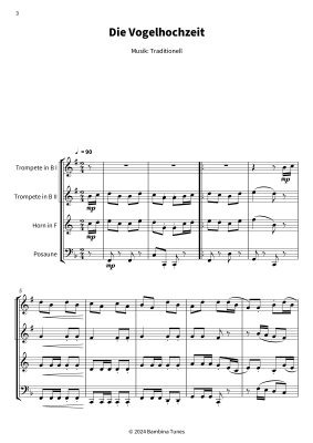 Die Vogelhochzeit - Noten fĂŒr BlechblĂ€ser Quartett 2x Trompete in B, Horn in F + Posaune Traditionell