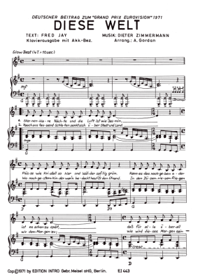 Diese Welt - Noten für Klavier und Gesang Katja Ebstein