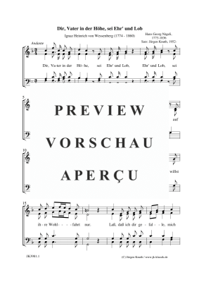 Dir, Vater in der Höhe, sei Ehr´ und Lob - Noten für Gemischter Chor Hans Georg Nägeli