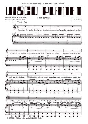 Disco Planet - Noten für Klavier und Gesang Frank Zander