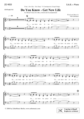 Do You Know - Get New Life - Noten für Gemischter Chor SAB, Solo und Klavier Niko Schlenker