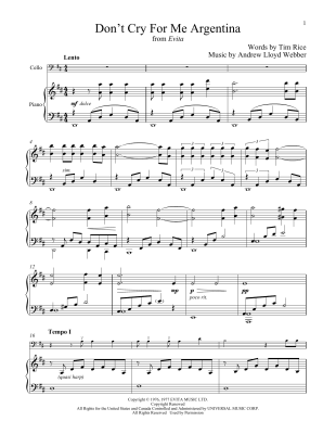 Don't Cry For Me Argentina (from Evita) - Noten für Klavier, Violoncello Andrew Lloyd Webber