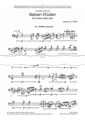 Doppelgriffe (7 Etudes, No. 7) - Noten für Violoncello Isang Yun