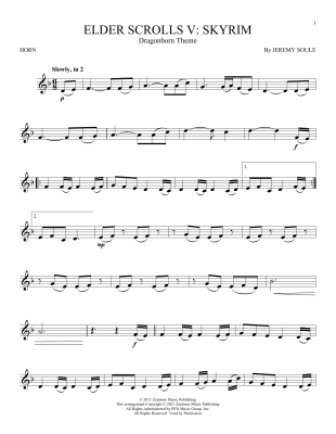 Dragonborn (Skyrim Theme) - Noten für Horn Jeremy Soule
