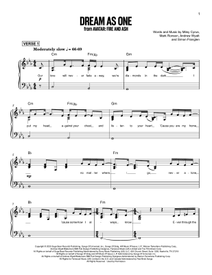 Dream As One (from Avatar: Fire and Ash) - Noten für Miley Cyrus