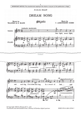 Dream Song - Noten für Gesang, Klavier Cecil Armstrong Gibbs