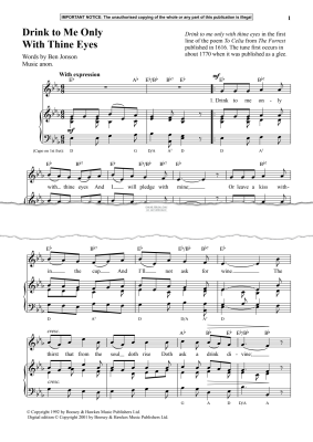 Drink to Me Only With Thine Eyes - Noten für Gesang, Klavier Anon