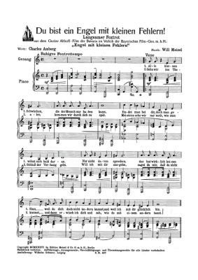 Du bist ein Engel mit kleinen Fehlern - Noten für Klavier und Gesang aus: Engel mit kleinen Fehlern (Film)